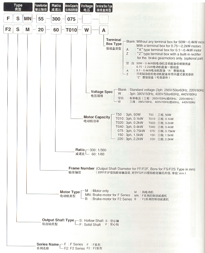 日精 減速機 中空軸直角電機型號說明