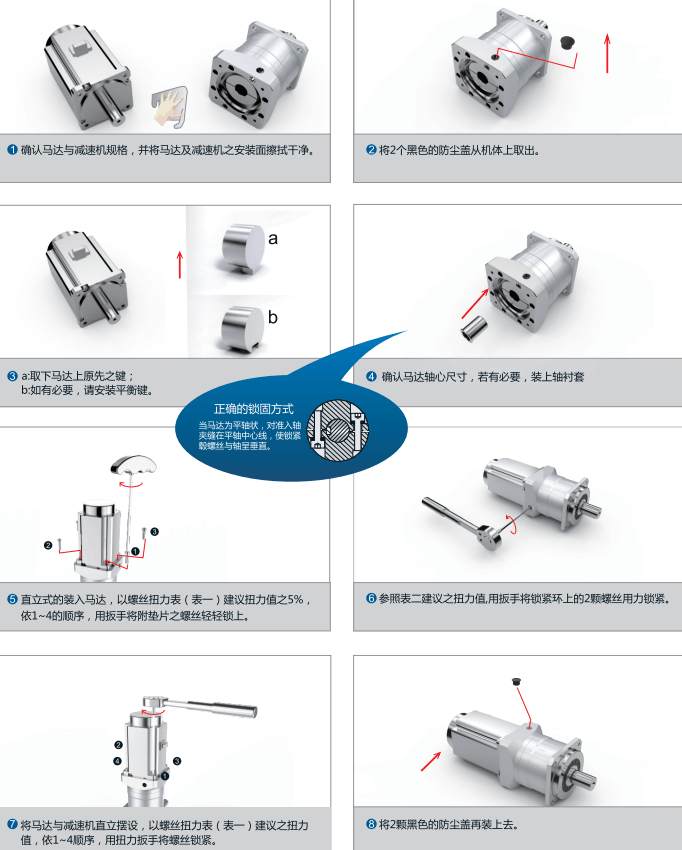 PF系列行星減速機(jī)與伺服馬達(dá)安裝的說(shuō)明-邁傳減速機(jī)
