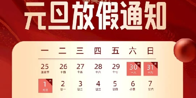 2024年1月1日元旦將至,結(jié)合公司實(shí)際情況經(jīng)公司研究決定放假安排如下: